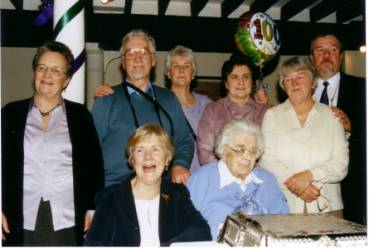 100th birthday, Jan 2004, with her children l to r: Josie, Ralph, Mary, Teresa, Margaret, Paul, seated: Kathleen, Helena |